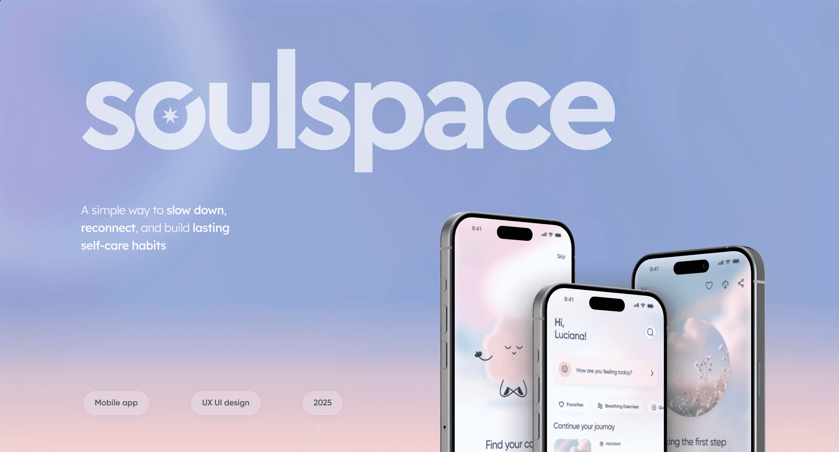 We created Soulspace, a mobile app concept focused on mindfulness and personal well-being. The design emphasizes a calm, distraction-free interface where users can quickly access guided sessions, log moods, and track their daily progress. Our goal was to reduce friction during onboarding, create a scalable design system, and deliver an experience that feels light yet engaging.